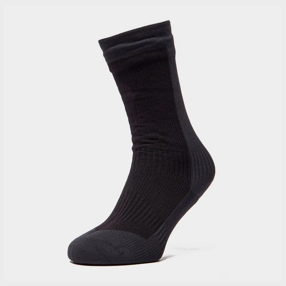 High performance mid length sock balancing warmth, comfort and breathability perfect for a multitude of activities. Constructed from a stretchy hydrophilic membrane  blended with soft merino wool the Sealskinz mid length hiking sock stretches to fit the foots natural shape keeping the foot dry and protected against wind and rain.Â